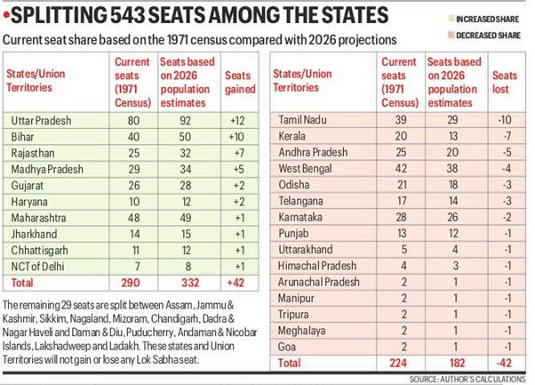 - North-South Divide: Northern states like Uttar Pradesh and Bihar may gain seats, while southern states like Tamil Nadu and Kerala may lose seats post-delimitation.