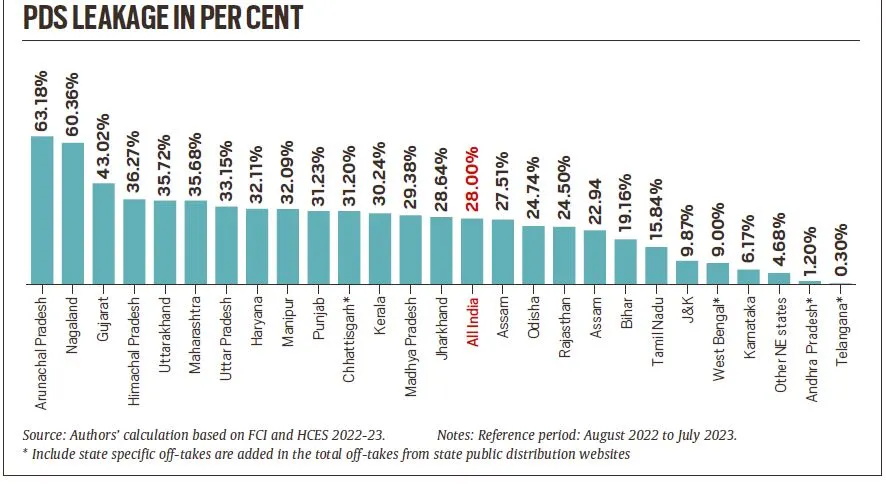 - Arunachal Pradesh, Nagaland and Gujarat are the top three states in terms of PDS leakages, although at all-India levels, leakages stand at 28 per cent.