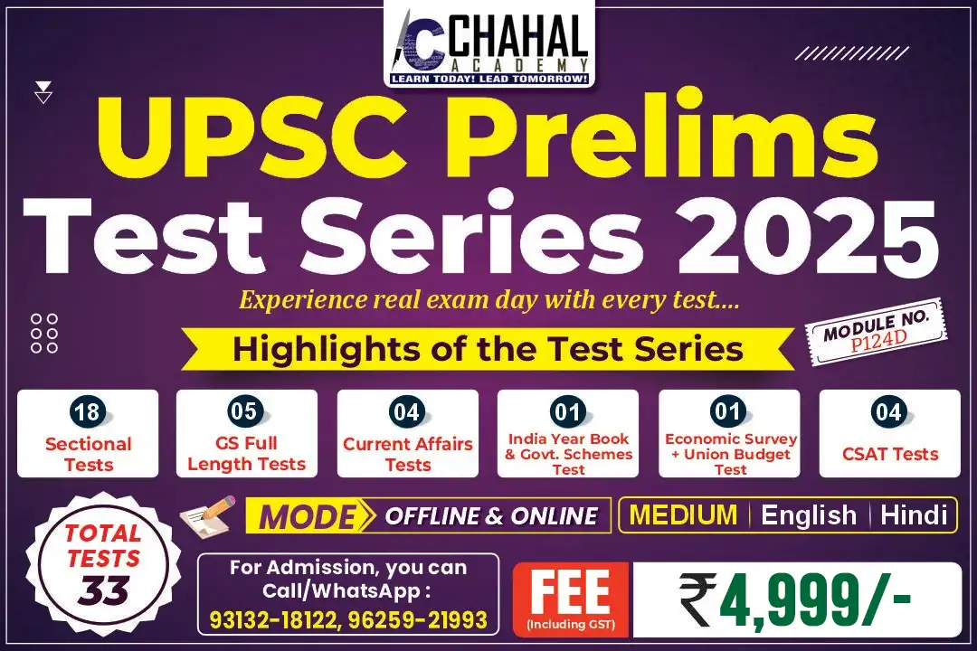 To help aspirants for the General Studies prelims exam, we at Chahal Academy are commencing the highly acclaimed All India GS Prelims Test Series. The Details of the programme are given below: